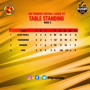 Black Pearls have concluded the round one of the Uganda Rugby Union Central Women’s games as leaders on the table with 12 points.