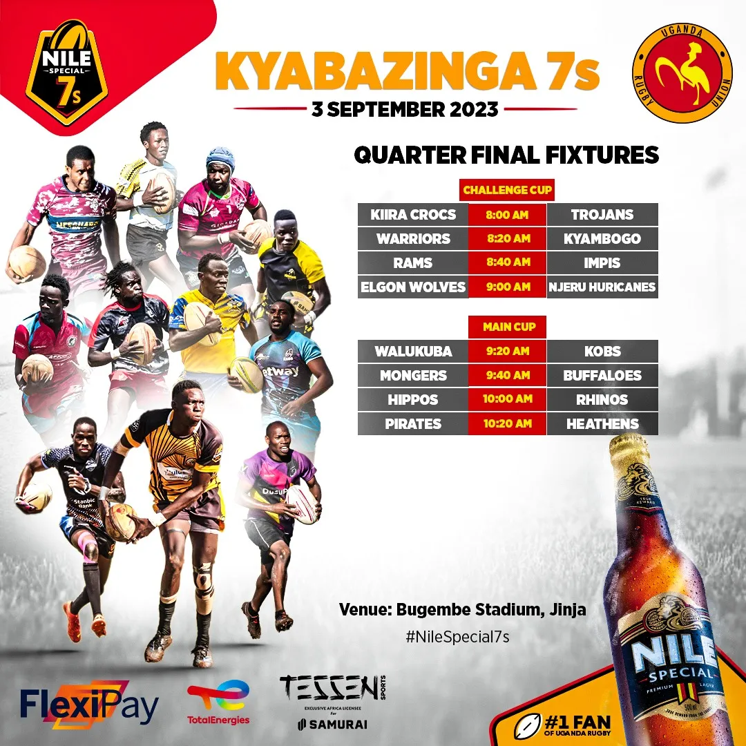 Kyabazinga 7s main cup quarters: 9:20am- Walukuba Barbarians Vs KOBS 9:40am- Mongers Vs Buffaloes 10:00am- Hippos Vs Rhinos 10:20am- Pirates Vs Heathens The Kyabazinga 7s hosts Walukuba Barbarians will take on KOBS in the first main cup quarter finals. Plascon Mongers take on Buffaloes in the second fixture while Jinja Hippos take on Rhinos in […]