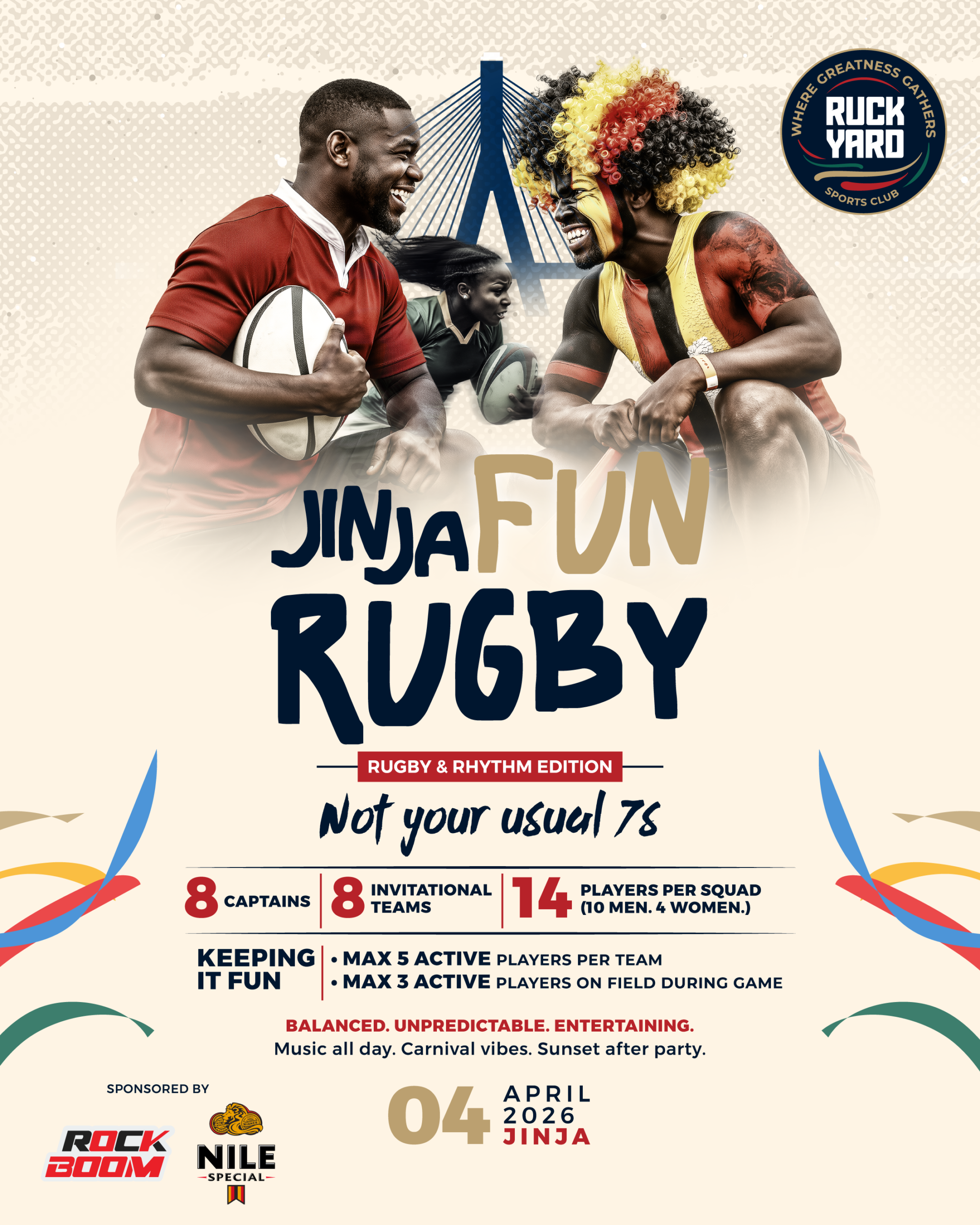 The excitement then shifts to Jinja on Saturday at the Ruck Yard, where the energy will be turned up a notch with a dynamic sevens rugby tournament. Featuring eight teams, the event will carry a playful twist as fans take on leadership roles stepping in as coaches and captains to guide their sides through the competition. Adding to the thrill of the weekend, two lucky fans will win an unforgettable bungee jumping experience courtesy of Bungee Uganda, one of the key sponsors of the event. This exciting reward perfectly complements the adventurous spirit of the weekend, giving participants something extra to look forward to beyond the rugby action.