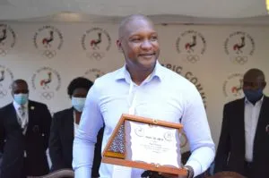 The award was handed over to him by outgoing UOC President William Blick and the incoming President Dr.Donald Rukare during the UOC Annual General Meeting in the the presence of delegates from the various federations of Uganda.