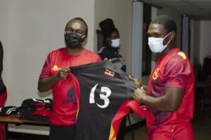 The Rugby Cranes’ coach robert Musinguzi today handed over jerseys to the players ahead of their first Rugby Africa Cup Pool C game against Ghana. The game will take place on 10th July 2021 at 3:00pm.