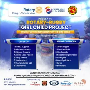The Rotary Club of Kisugu will host a tournament for girls at Kyadondo on 20th May 2023. A total of 17 teams will be competing in this tournament.